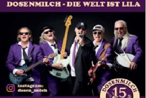 Es ist uns gelungen: Nach unglaublichen 38 Jahren präsentieren wir das Revival der Eitorfer Kult-Band „DOSENMILCH“ bei „Eitorf live“ am Eitorfer Marktplatz mit ihrer Show „DIE WELT IST LILA“. Das Benefizkonzert im Eitorfer Schützenhof am 24.04.2026 war bereits nach wenigen Tagen ausverkauft. Nun gibt es die Chance, die Band zum ersten Mal wieder oder noch einmal zu hören – und das ganze umsonst und draußen.